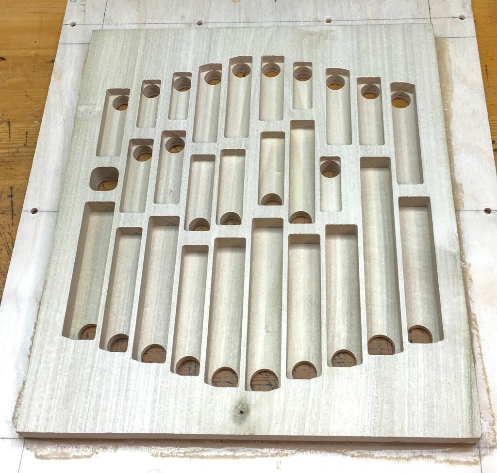 The frames were packed together on the pan pretty tightly. I couldn’t have fitted another note in, at least not without sacrificing the chamber extensions that were necessary to make the lowest reeds perform well.