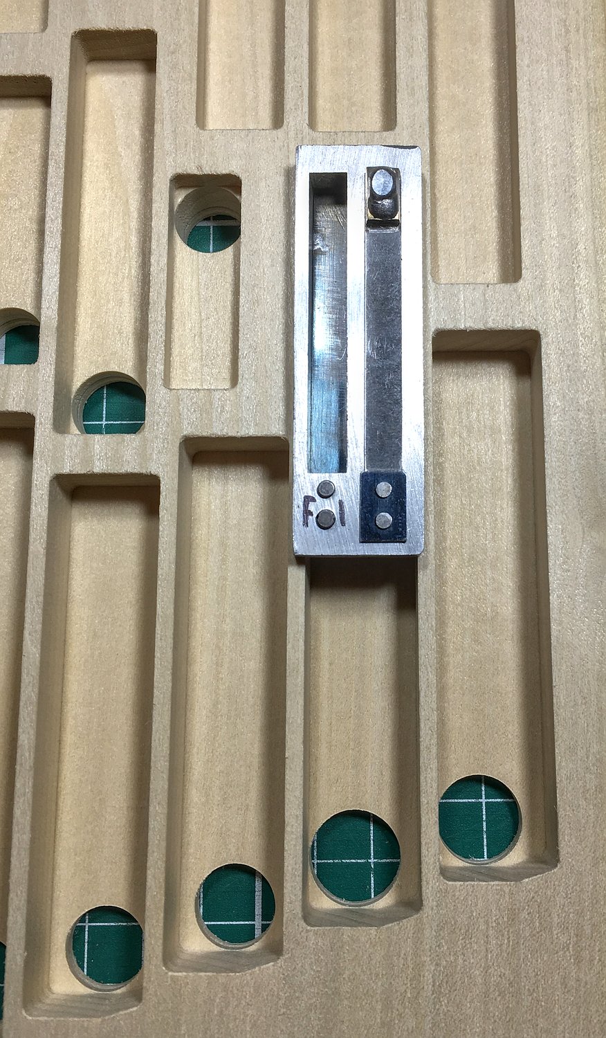 With the F1 reed plate in position over its chamber, you can see how much it was extended (the lower the pitch, the greater the chamber extension). You can also see that I routed the chambers to different depths for each reed plate size because higher pitched reeds benefit from less chamber volume.