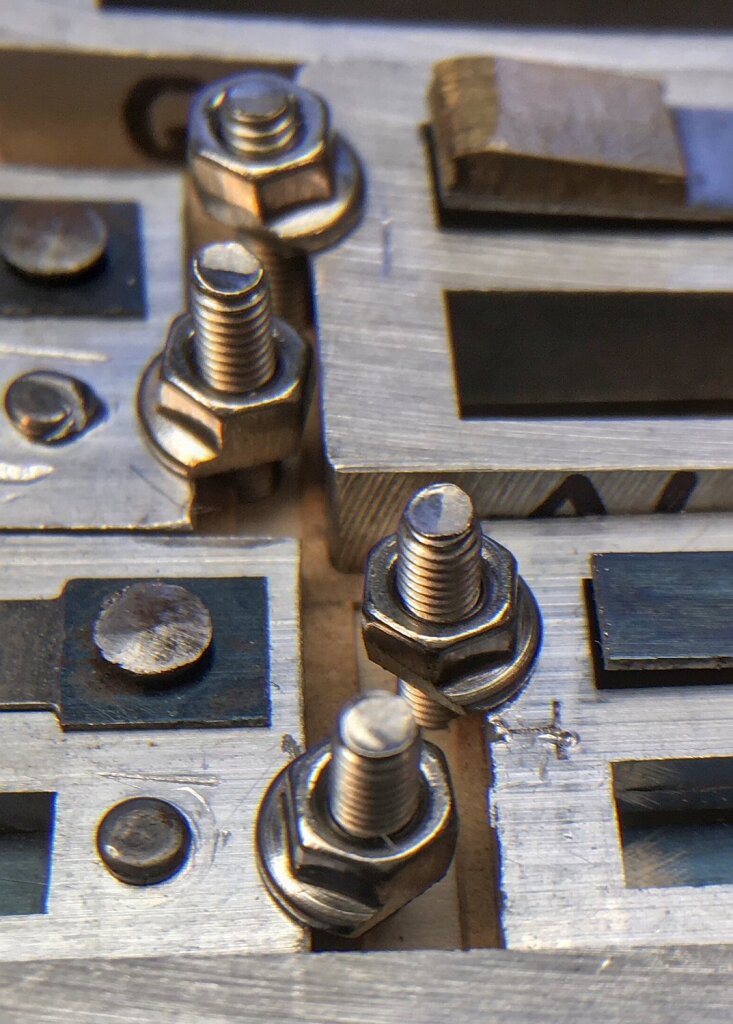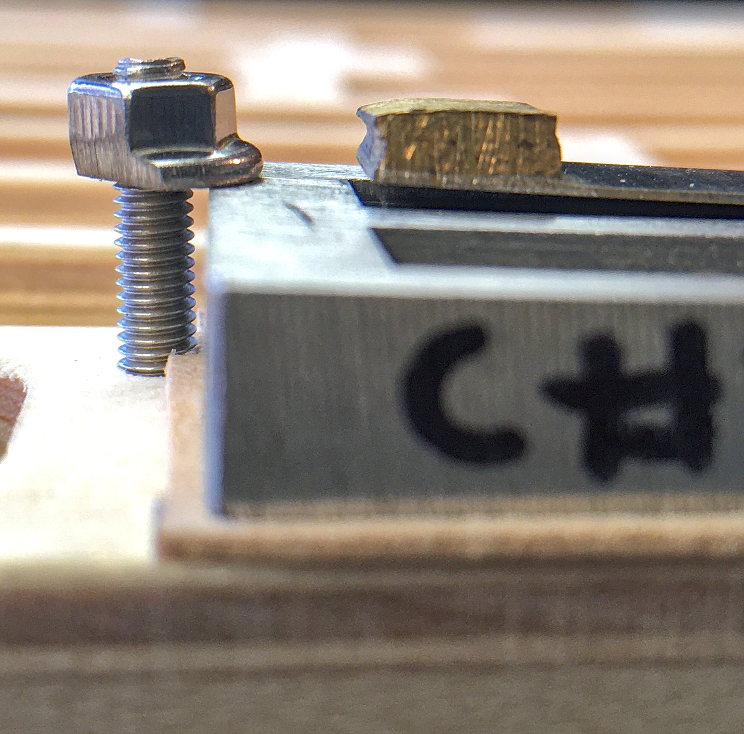 Each reed plate was screwed to the reed pan using a pair of M3 stainless steel hex button-head screws with serrated flange nuts that I had modified slightly by grinding off part of the flange. There was also a Belleville spring washer under the head of each screw.