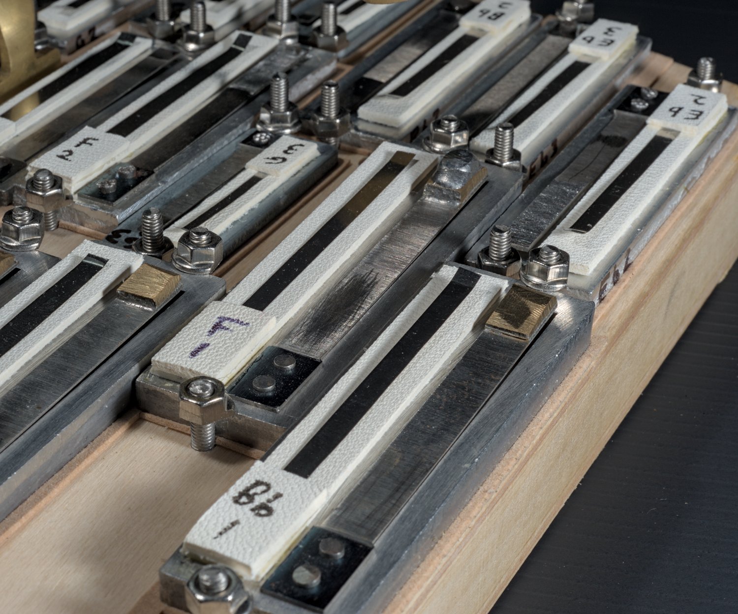 • Hohner accordion bass reeds screwed to a separate flat reed pan.