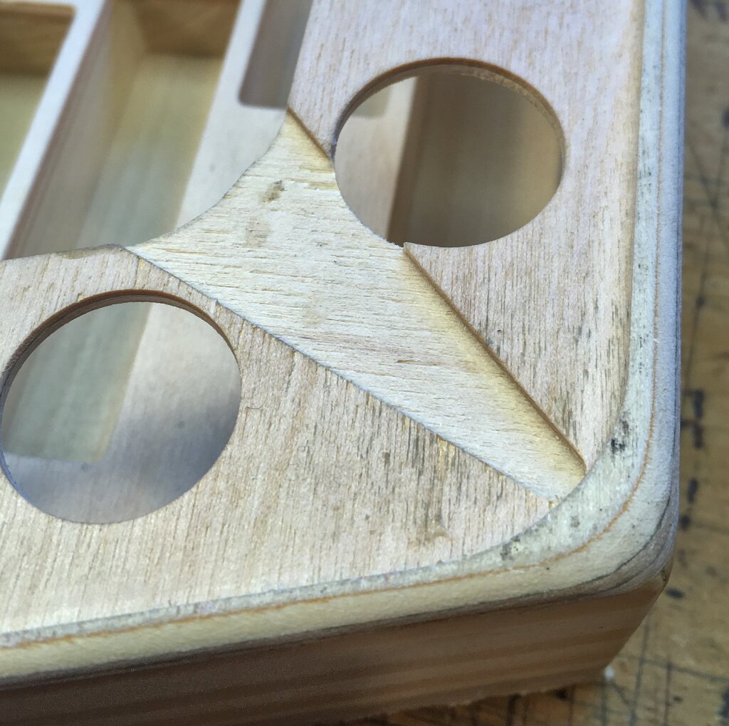 This shows the interior of the pan, before gluing on the bottom layer of plywood: