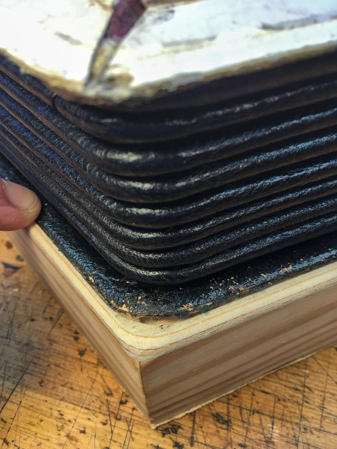I had to use new linen hinges and leather covering to attach the bellows to the new frames.