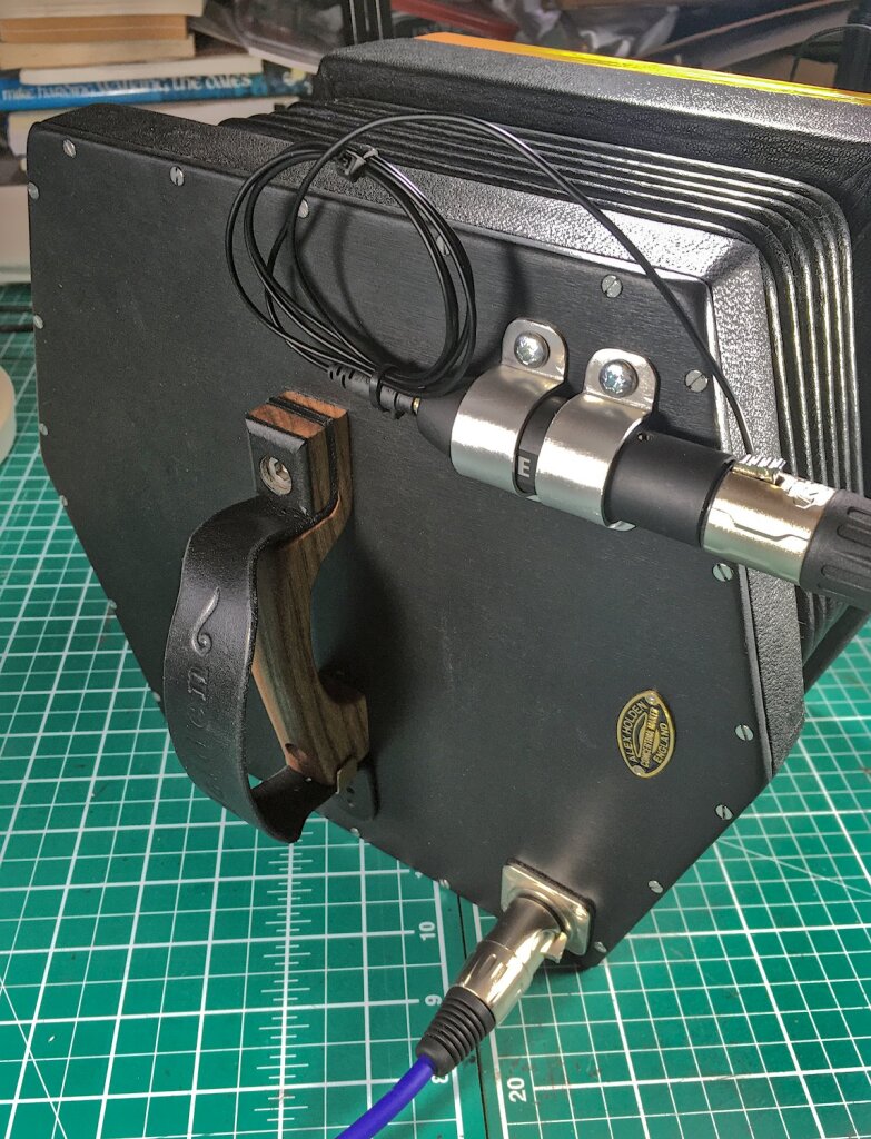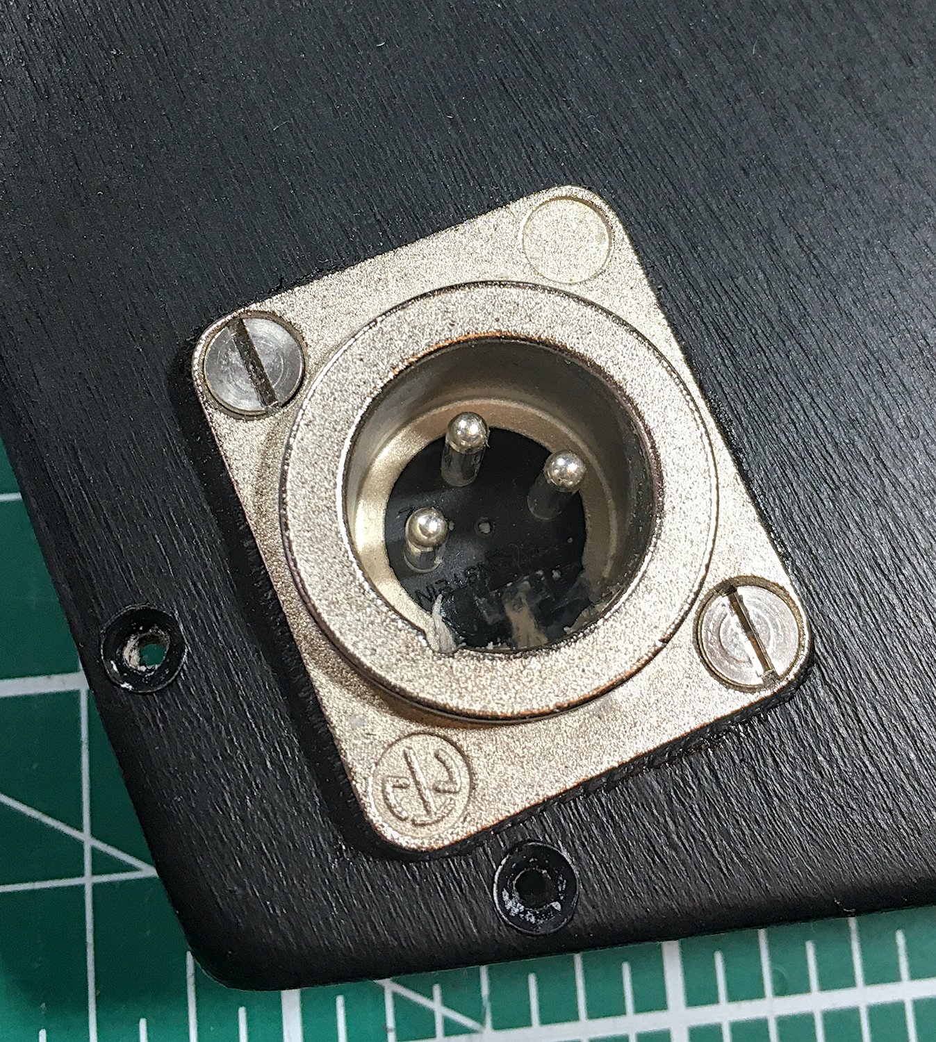 I also fitted a panel mount XLR socket, sealing it with a leather gasket and liberal amounts of silicone sealant.