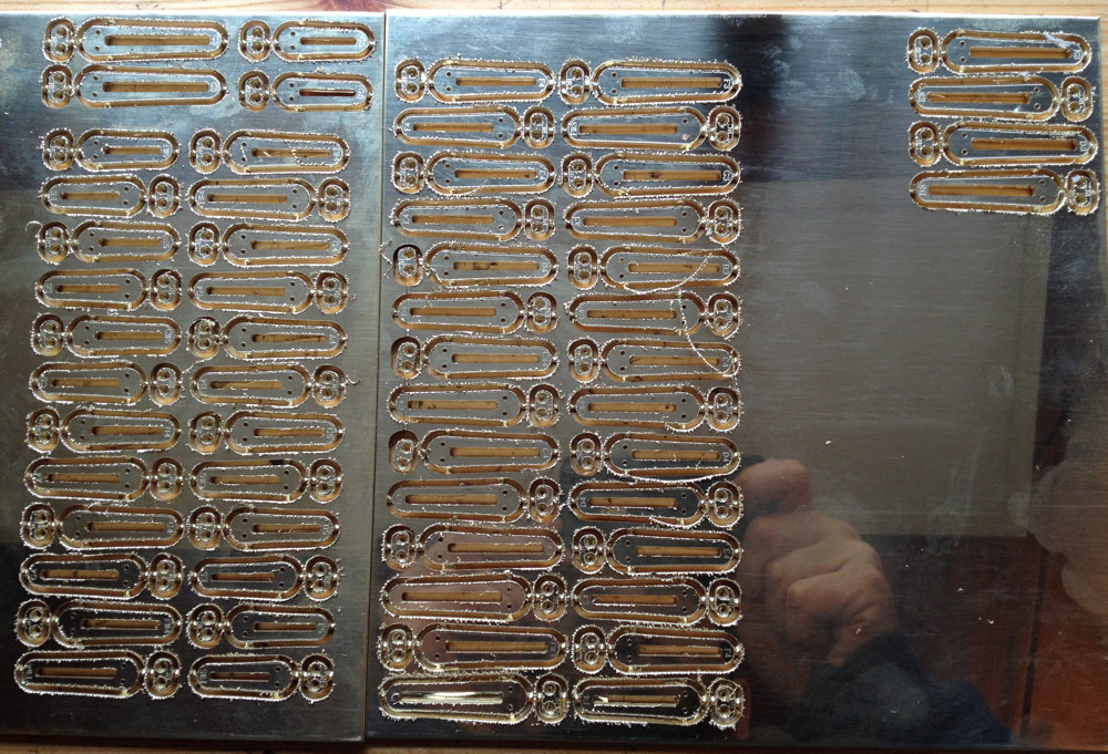 The finished reed pans. Note all the marks in biro indicating where and which way round they fit.