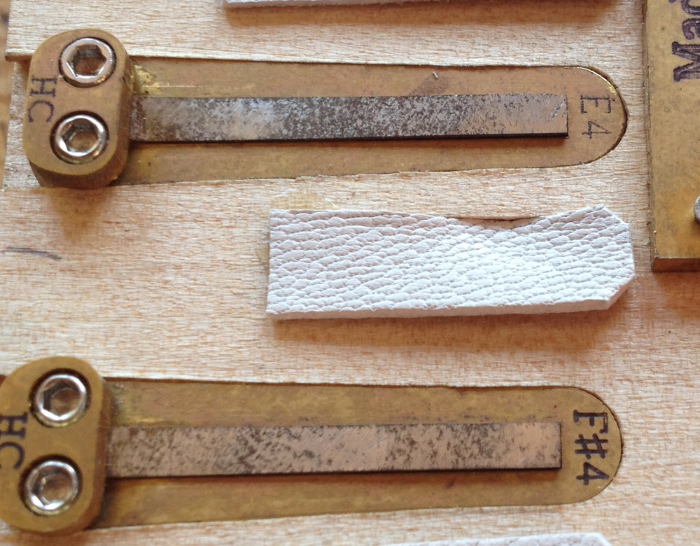 Gluing strips of chamois leather to the tops of the walls with rabbit skin glue. I found that skiving the ends of these strips needs a slightly different technique to skiving bellows leather because the chamois is so soft and stretchy.